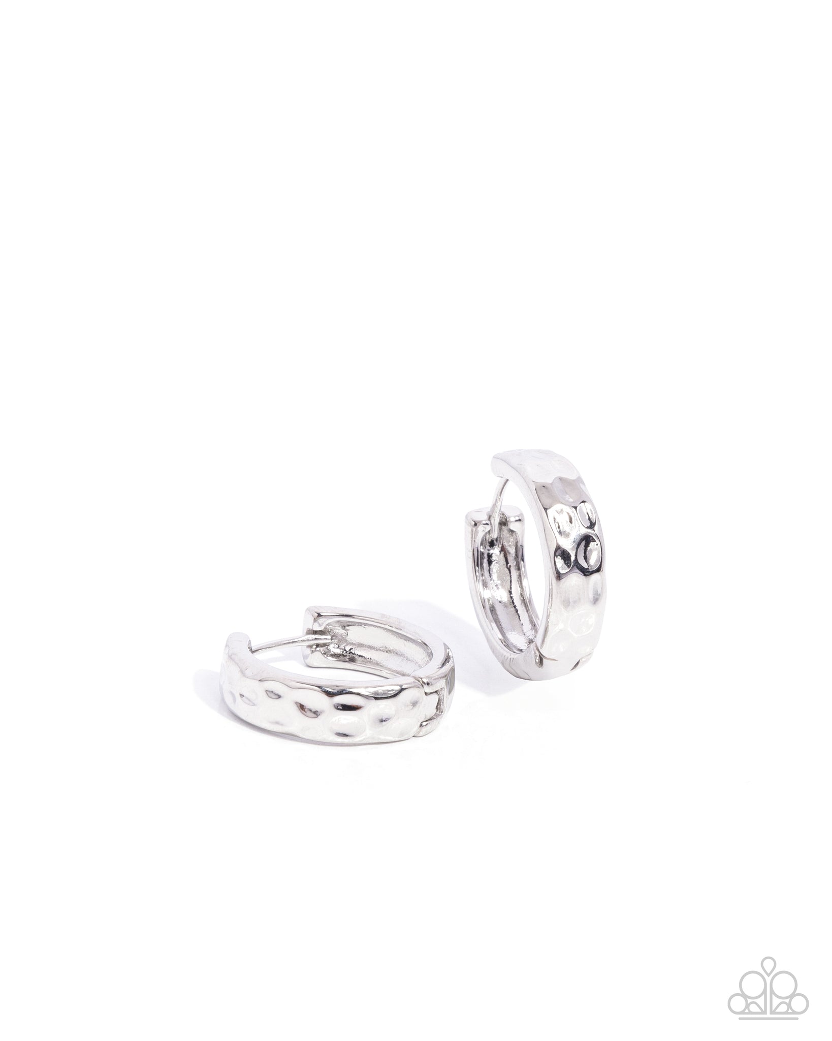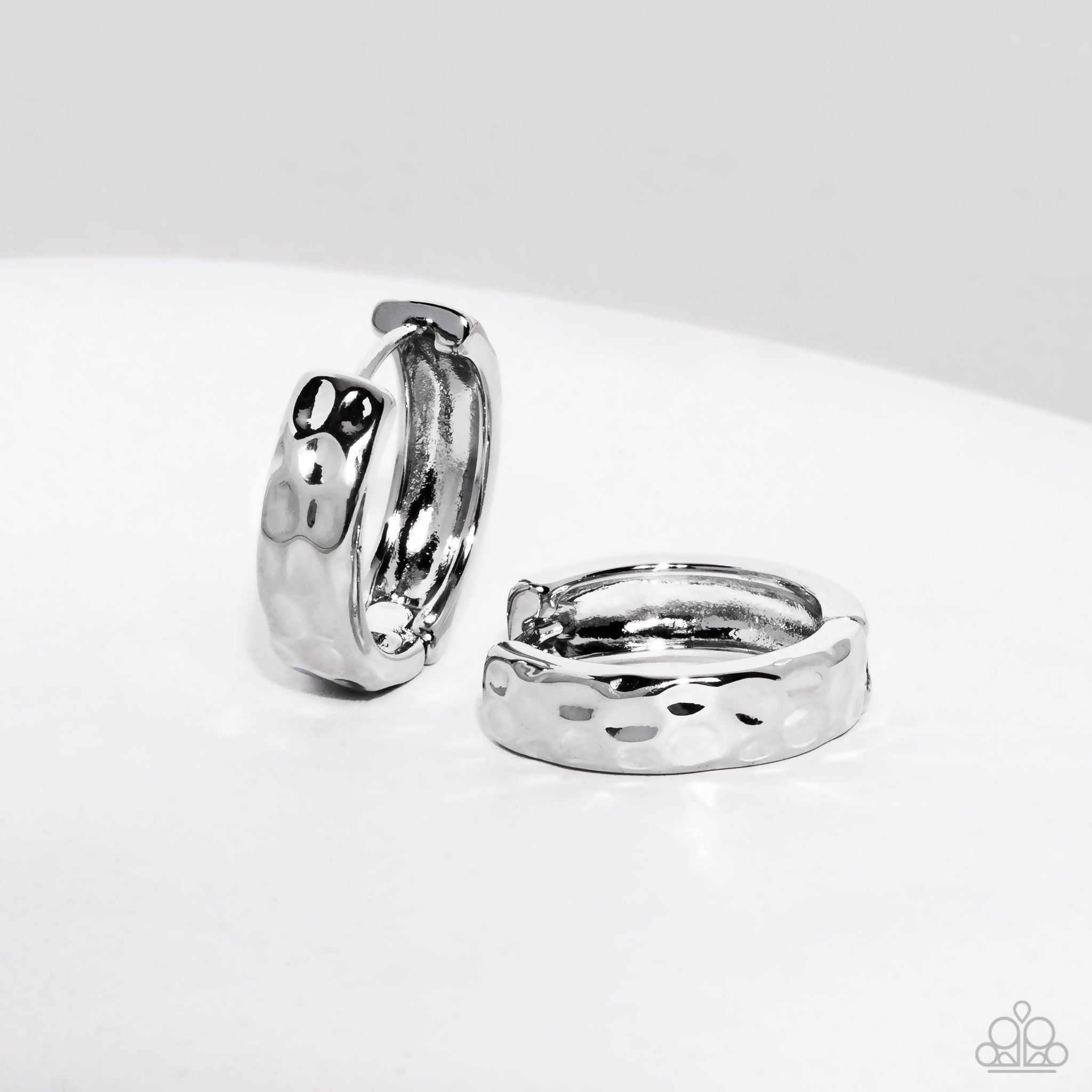 Delicately hammered in shimmery textures, a thick silver hoop curls and hugs around the ear for a casual look.